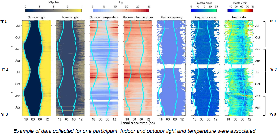 In people living with dementia: • Measures of sleep and physiology varied with season. • The indoor light and temperature environment affected multiple aspects of sleep physiology, sleep timing, continuityand duration independent of season. Tuning indoor light and temperature maybe a pragmatic way to improve sleep in those living with dementia. For more info click here. |
